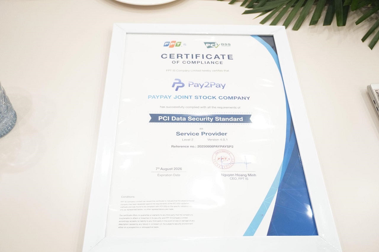 FPT IS, a member of FPT Corporation, has officially awarded the PCI DSS 4.0.1 Level 2 certification to Pay2Pay, a leading online payment solutions provider in Vietnam. This milestone underscores Pay2Pay’s commitment to complying with global payment card data security standards, while reaffirming FPT’s expertise and credibility as a trusted consultant, assessor, and certifier of PCI DSS for banks, financial institutions, and fintech enterprises across Vietnam.