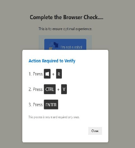 However, instead of clicking on squares or selecting images as usual, this fake verification interface instructs users to perform a series of keyboard shortcuts to “complete the browser check.”