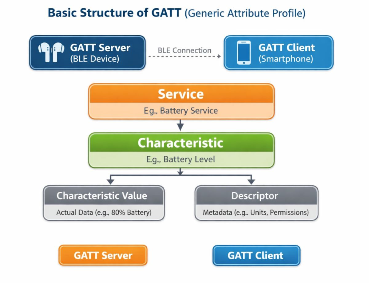 - GATT Server: BLE devices (e.g., headphones, smartwatches)