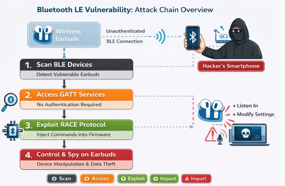 Bluetooth headsets have long been considered “harmless” personal devices for specific purposes like listening to music, making calls, or supporting virtual assistants. However, at the end of December 2025, security research by ERNW discovered a series of zero-day vulnerabilities that completely changed this perception. A series of serious vulnerabilities in Bluetooth chips developed by Airoha Systems revealed that wireless headphones can become eavesdropping tools and a perfect entry point for hackers in today’s cybercrime world.