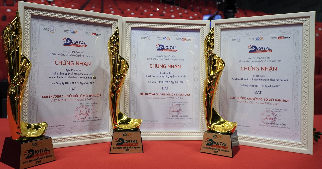 Affirming its pioneering position in fostering innovation and developing Make in Vietnam products in line with Resolution No. 57-NQ/TW, five of FPT’s products and solutions were honored at the Vietnam Digital Awards 2025 (VDA 2025). Among them, FPT IS – a member company of FPT Corporation – proudly received three awards in the category of Outstanding Digital Products, Services, and Solutions: FPT Culture Tech – a digital technology ecosystem for heritage preservation and promotion; Kyta Platform – an end-to-end identification and digital transaction automation platform; FPT CX Suite – a next-gen Customer Experience Management Platform.