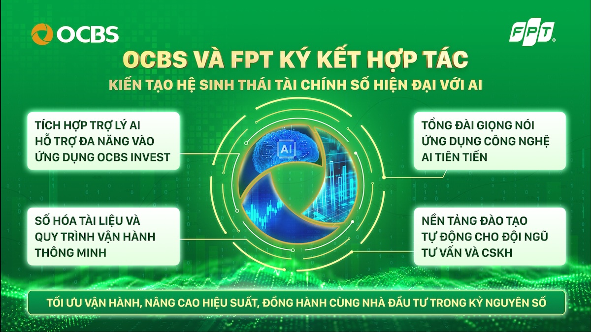 OCBS Securities Joint Stock Company and FPT Group held a signing ceremony for a Memorandum of Understanding (MOU), marking the start of comprehensive cooperation to develop a modern financial ecosystem based on Artificial Intelligence (AI) and Big Data. Under the agreement, FPT will partner with OCBS to implement end-to-end digital solutions aimed at optimizing operational efficiency and enhancing customer experience.