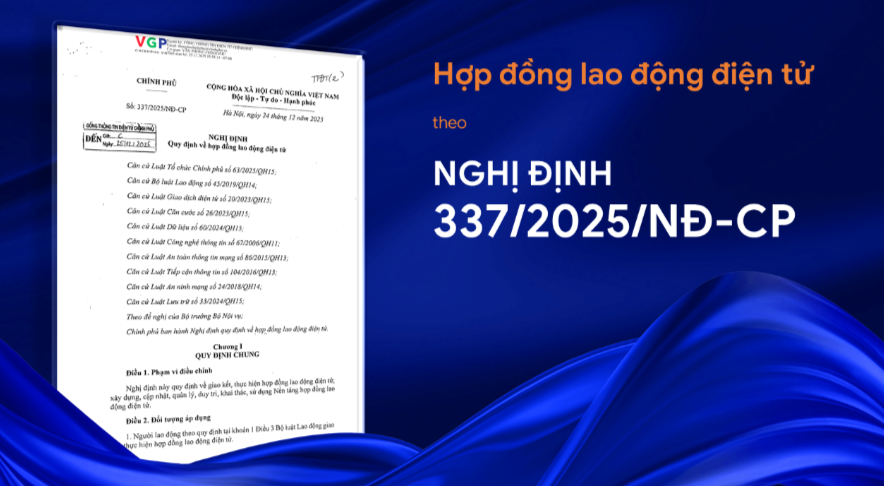 Thông tin nhanh về Nghị định 337/2025/NĐ-CPNgày 24/12/2025, Chính phủ ban hành Nghị định 337/2025/NĐ-CP quy định về giao kết, thực hiện hợp đồng lao động điện tử và việc xây dựng, quản lý nền tảng hợp đồng lao động điện tử. Văn bản này đặt nền tảng pháp lý cho việc triển khai hợp đồng lao động điện tử tại Việt Nam và là một bước đi quan trọng trong quá trình số hóa quản trị lao động. |