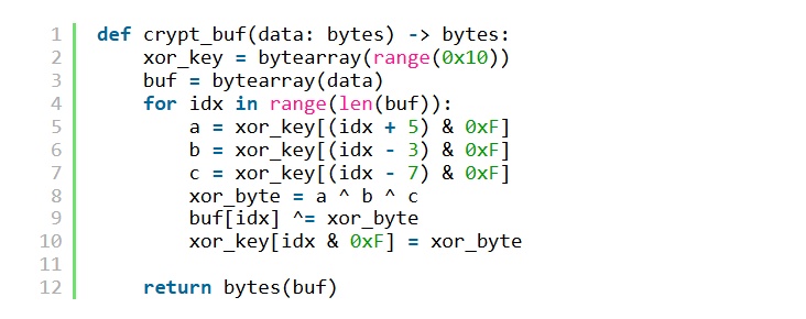 Các loader này có nhiệm vụ đọc một file mã hóa (perfh011.dat), giải mã và nạp malware vào bộ nhớ. Và để tránh bị phát hiện hoặc gây khó khăn cho quá trình phân tích tĩnh thì kẻ tấn công đã sử dụng một đoạn mã XOR.