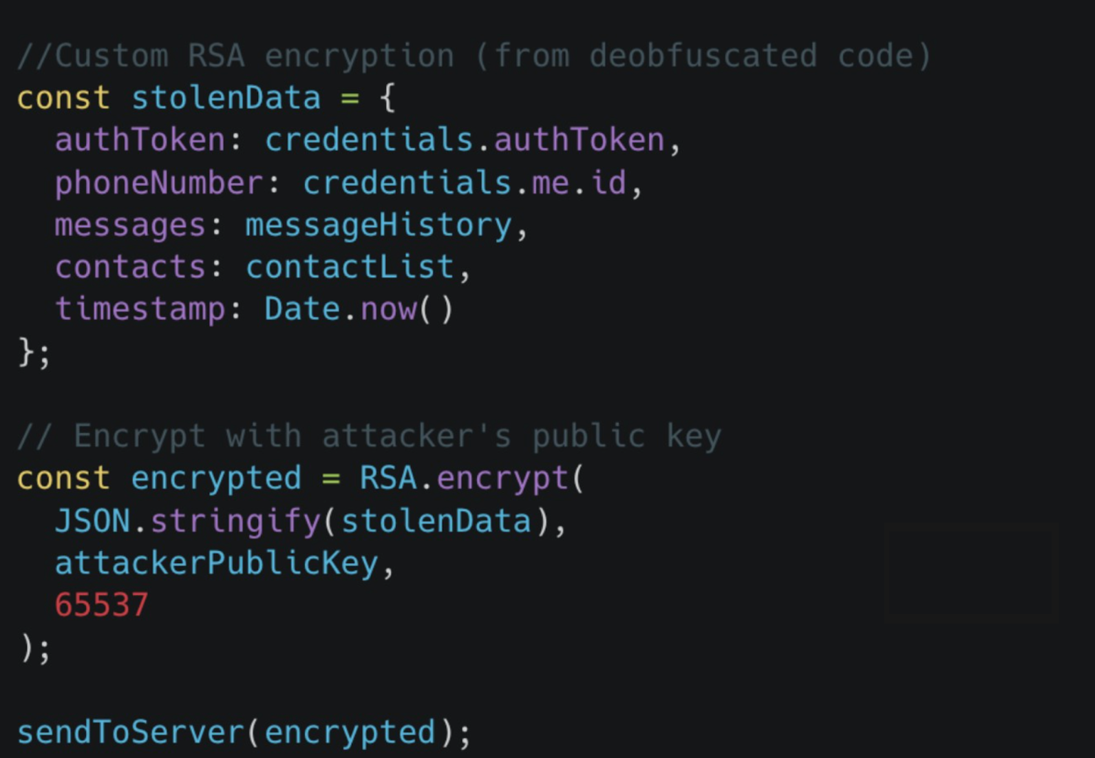 - Thay vì gọi trực tiếp đến WebSocket WhatsApp, package gói WebSocket client bằng một wrapper độc hại.